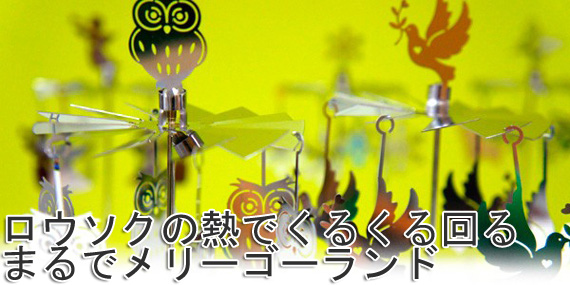 このキャンドルホルダーに羽根をつけると、上昇気流が生まれ回転する。そこにいたる工程は、ロウソク(キャンドル)にとってさまざまな現象によって保たれている。