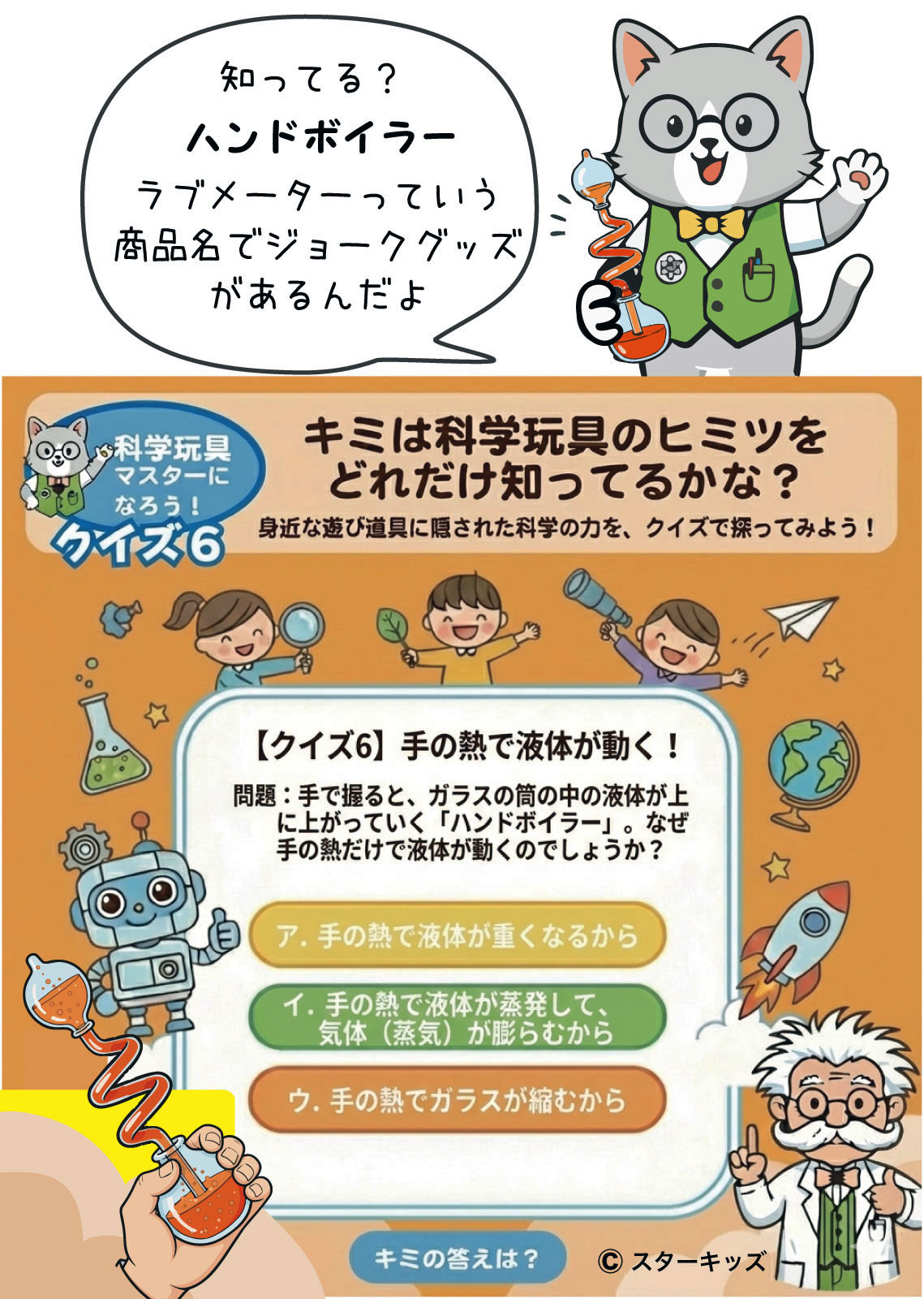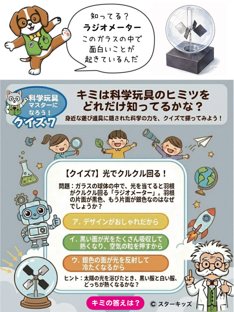 光を当てると羽根がクルクル回る「ラジオメーター」のクイズだよ!