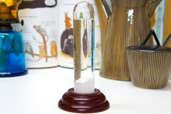 管の中の液体と結晶の変化により6時間から12時間後の天候の予測が出来るストームグラス(天気管)です。このストームグラスは19世紀に航海の時に海の天候を予測するために発明された道具です。