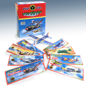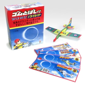 昔は、このソフトな飛行機よりも、型紙をきれいに切って竹ひごをその形に合わせて紙を張るタイプで、プロペラを回してゴムひもを巻いていき、その動力で飛ぶ紙製飛行機が主流であった。
